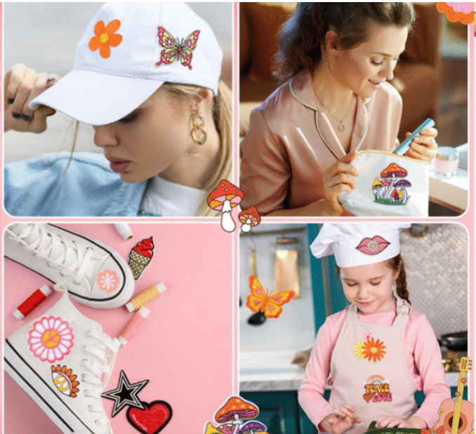 12 types of series are available embroidery Glitter embroidery label patch.